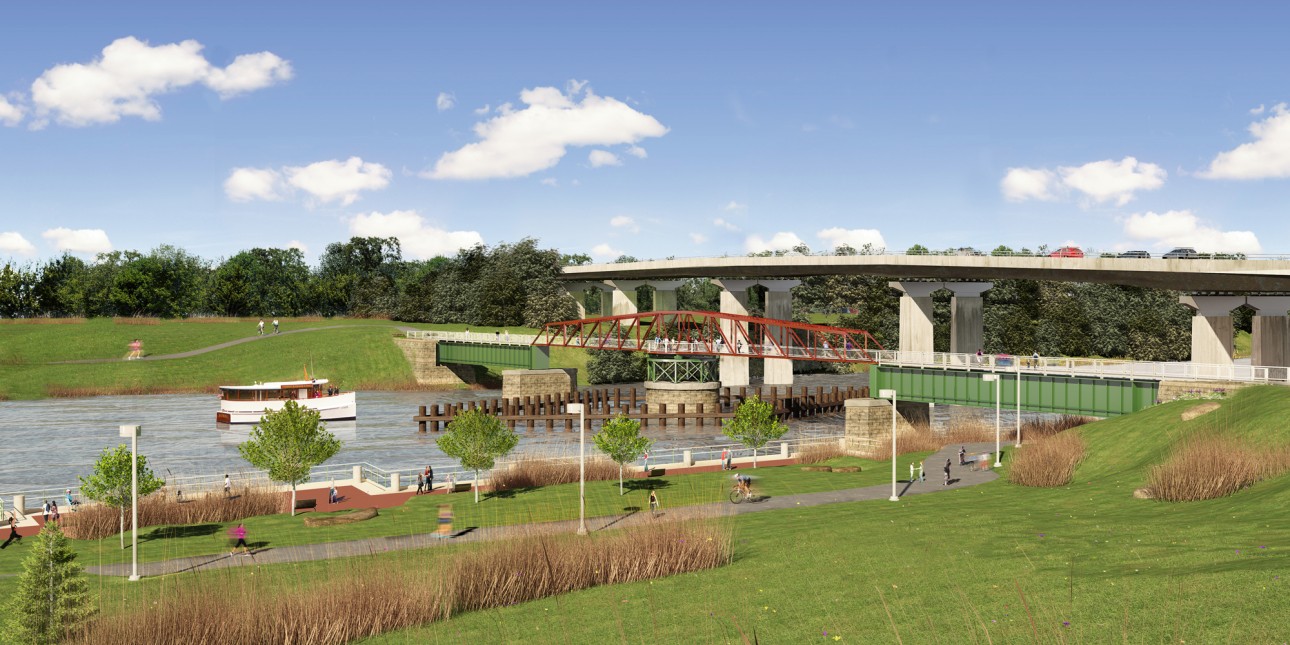 Every day we get closer to the completion of the Swing Bridge that will connect Grays Ferry Crescent and Bartram’s Mile (shown in the above rendering). The contractors installed the center turning mechanism which will allow the truss to rotate open and closed. The truss will soon be delivered to a yard near Fort Mifflin where it will be assembled in three parts and then loaded onto a barge and brought upriver. Once this project is open to the public, we will be able to cross the tidal Schuylkill on a pedestrian- and cyclist-only bridge! And once the Christian to Crescent Connection is completed in a few years (shown in the below rendering), we will be able to walk, run, bike, skate board, and roller blade between dozens of neighborhoods from Kingsessing to Roxborough and beyond on a car-free trail.