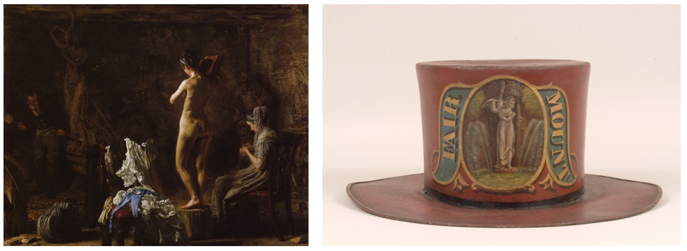 Above Left Image: Oil painting by Thomas Eakins, William Rush Carving His Allegorical Figure of the Schuylkill River, 1876–77. Image provided by the Philadelphia Museum of Art, https://philamuseum.org/collection/object/42507. Above Right Image: National Museum of American History, Smithsonian Institution. “Smithsonian Learning Lab Resource: Fairmount Fire Company Fire Hat.” Smithsonian Learning Lab, Smithsonian Office of Educational Technology, 31 Oct. 2015, https://learninglab.si.edu/q/r/59228
