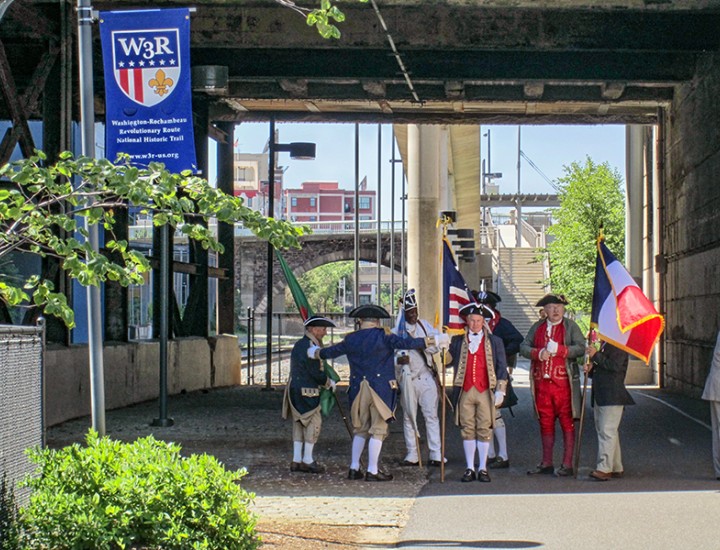Above image of oil painting by John Lewis Krimmel, Fourth of July in Centre Square, 1812. Allegory of the Schuylkill River (Water Nymph and Bittern) is the center statue. Image provided by Pennsylvania Academy of the Fine Arts.