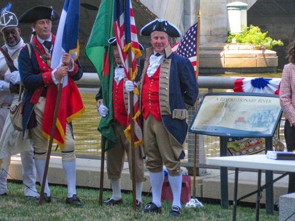 An interpretive sign stands in close proximity to where the French and Continental Armies camped along the Schuylkill River while on their way from Rhode Island to Virginia in 1781. This location was the 27th camp the troops made during their journey. Learn more about the Washington-Rochambeau Revolutionary Route here.
